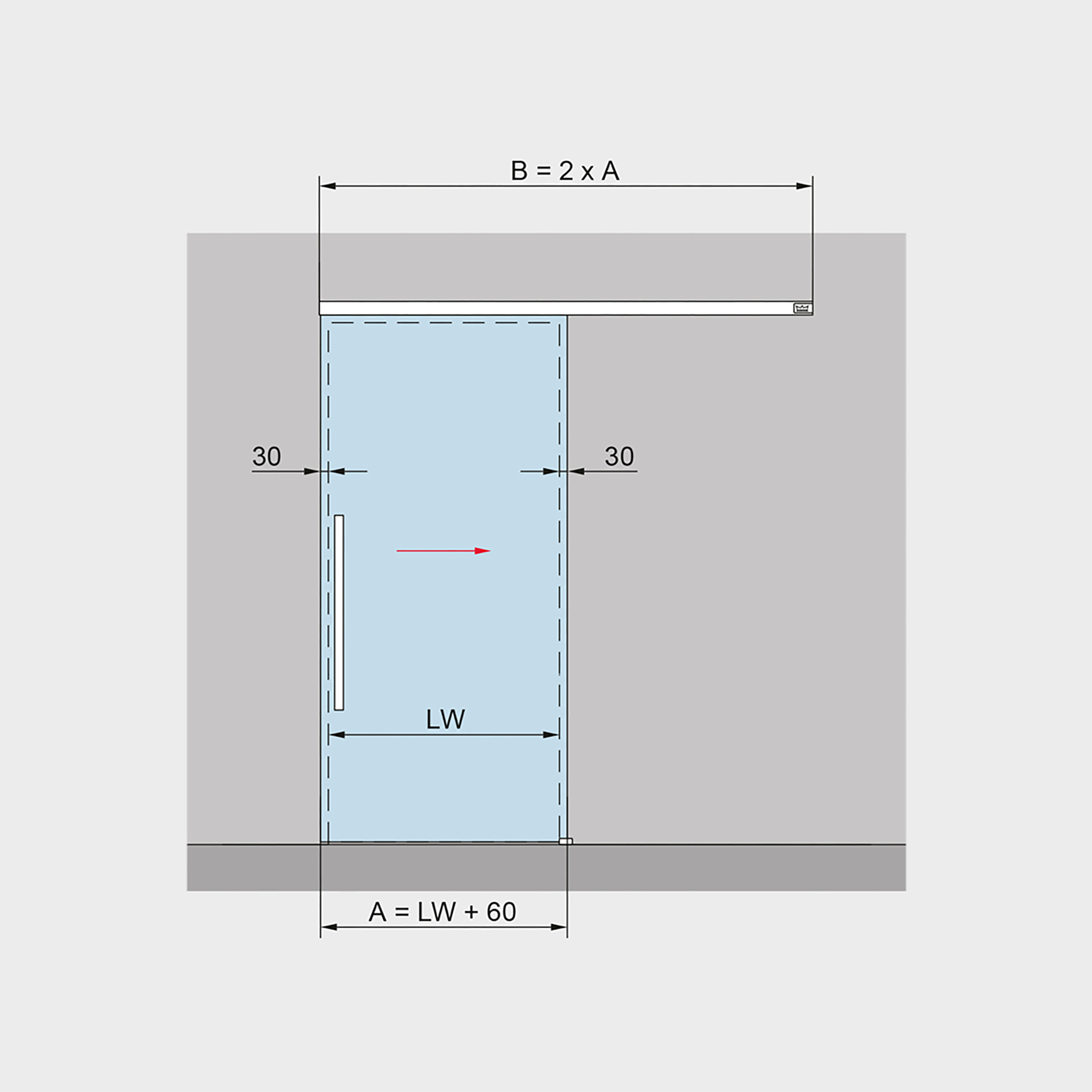 Das Glasschiebetürsystem Dorma MUTO 190 cm Schwarz ist ein hochwertiges Beschlagsystem für Glasflügel bis 60 kg. Die Comfort-Ausführung sorgt für einen ruhigen Lauf und eine saubere Führung. Das schwarze Profil verleiht der Tür eine klare, moderne Optik und passt ideal zu zeitgemäßen Innenräumen – egal ob Wohnbereich, Büro oder Praxis. Dorma gibt das System für Flügelbreiten bis 950 mm frei. Bei Hansaglas nutzen wir den Beschlag auch für Türbreiten bis 1025 mm, wenn Griffmodelle eingesetzt werden, die kein vollständiges Aufschieben des Flügels erfordern. Die Durchgangsbreite bleibt großzügig.