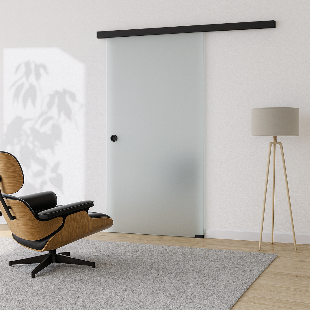 Die schwarze Oberfläche sorgt für eine kraftvolle, moderne Wirkung. Somit setzt das System gezielte Akzente in hellen Räumen. Gleichzeitig wirkt es ruhig und technisch klar. Deshalb bleibt der Fokus stets auf dem Glas und der Raumwirkung. Eine SoftClose-Dämpfung ist nicht im Lieferumfang enthalten, kann jedoch jederzeit optional nachgerüstet werden. Dadurch lässt sich der Komfort bei Bedarf einfach erweitern, ohne das komplette System austauschen zu müssen.